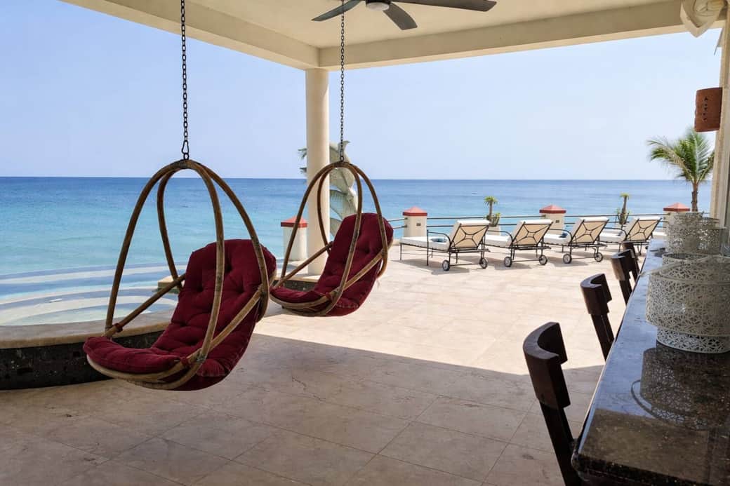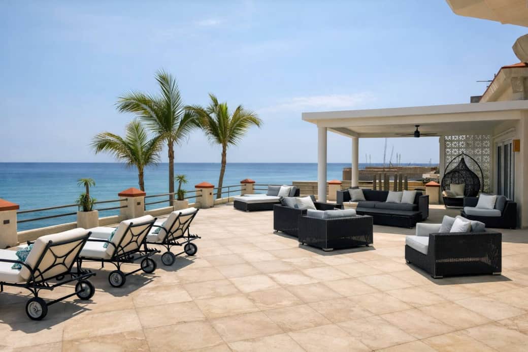 Throughout the home and outdoor spaces, Sonos speakers create the perfect soundtrack for your stay. Two expansive ocean-view terraces provide both sunny and shaded lounging areas.